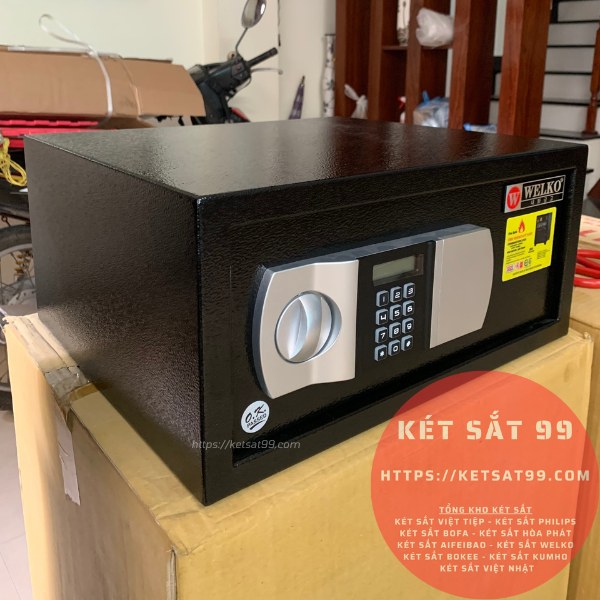 - Két sắt mini welko HS42DT, két sắt khóa điện tử (Mã: HS-DTW-42DT) có trọng lượng 12kg